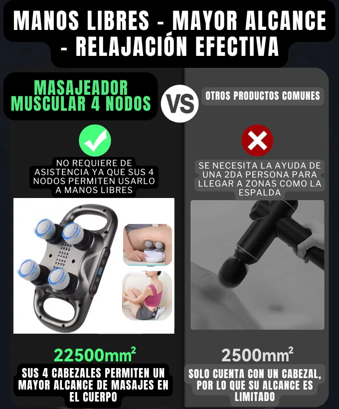 Con sus 4 cabezales especializados, tendrás el control total para cuidar de cada músculo que te molesta.